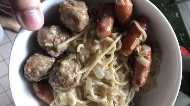 這個是宜家肉丸芝士腸加金寶湯做的汁意粉,算是最懶亦最易做的美食,想學留言,我教你。
